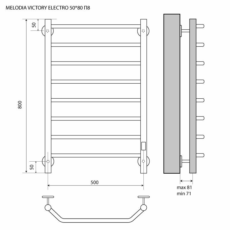 Полотенцесушитель электрический 500мм800мм Victory Electro лесенка П8 cухой ТЭН 103Вт встр.диммер Melodia della vita информация:
