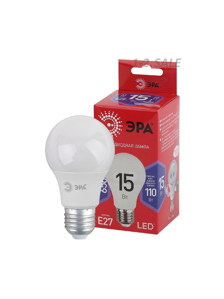 10 цен на (10 шт.) Светодиодная лампочка ЭРА ECO ЛОН A60 E27 15W(1200lm) 6500K 6K 116х60 A60-15W-865-E27 7769 Холодный белый. Цоколь E27