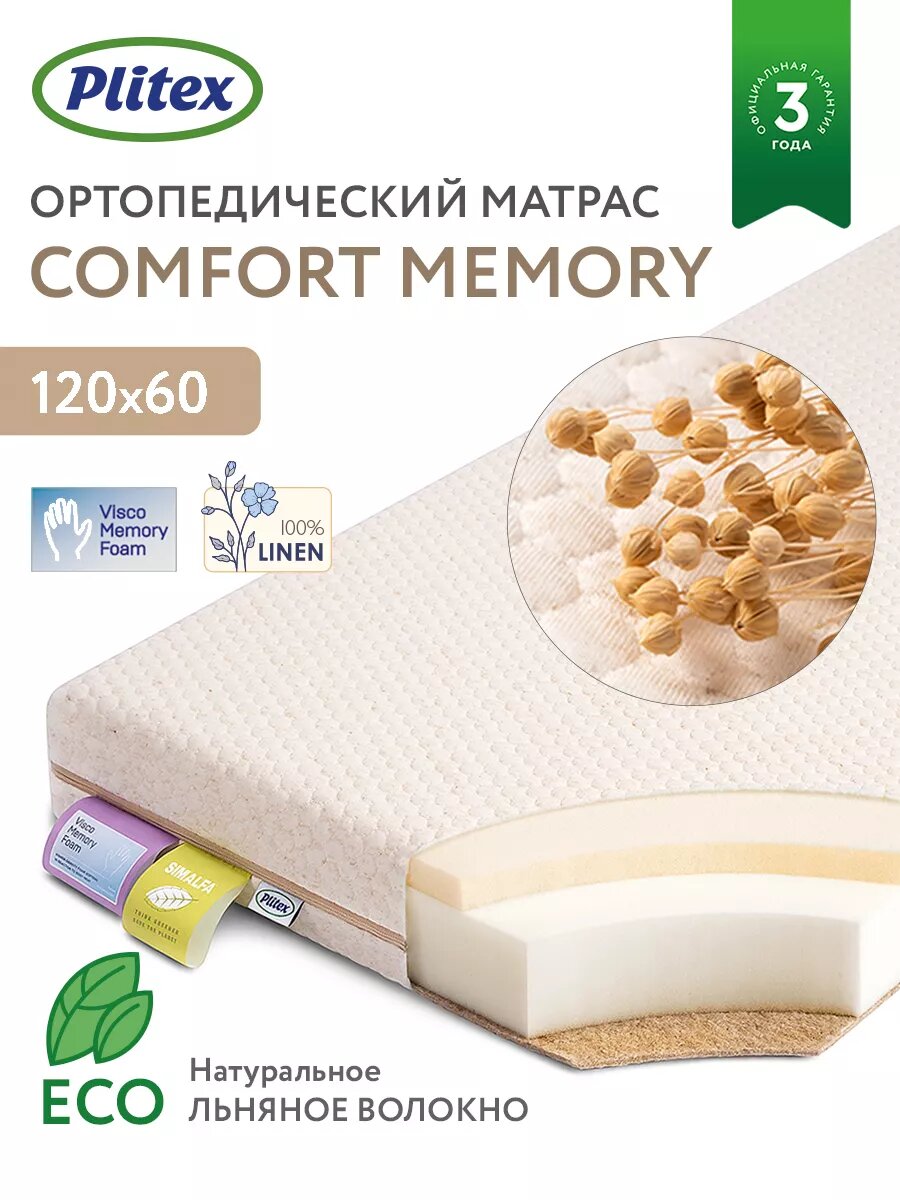 Матрас детский ортопедический Plitex Комфорт Memory, гипоаллергенный для новорожденного в кроватку 60х120 см 6 200 ₽