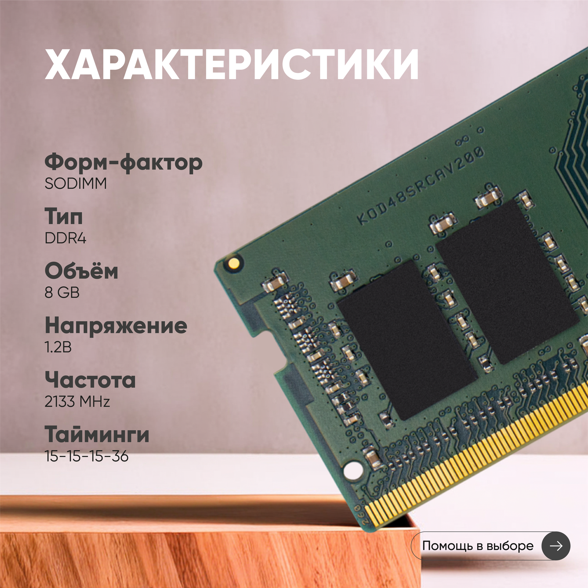 Модуль памяти Samsung SODIMM DDR4, 8ГБ, 2133МГц, PC4-17000, CL15 15-15-15-36 информация: