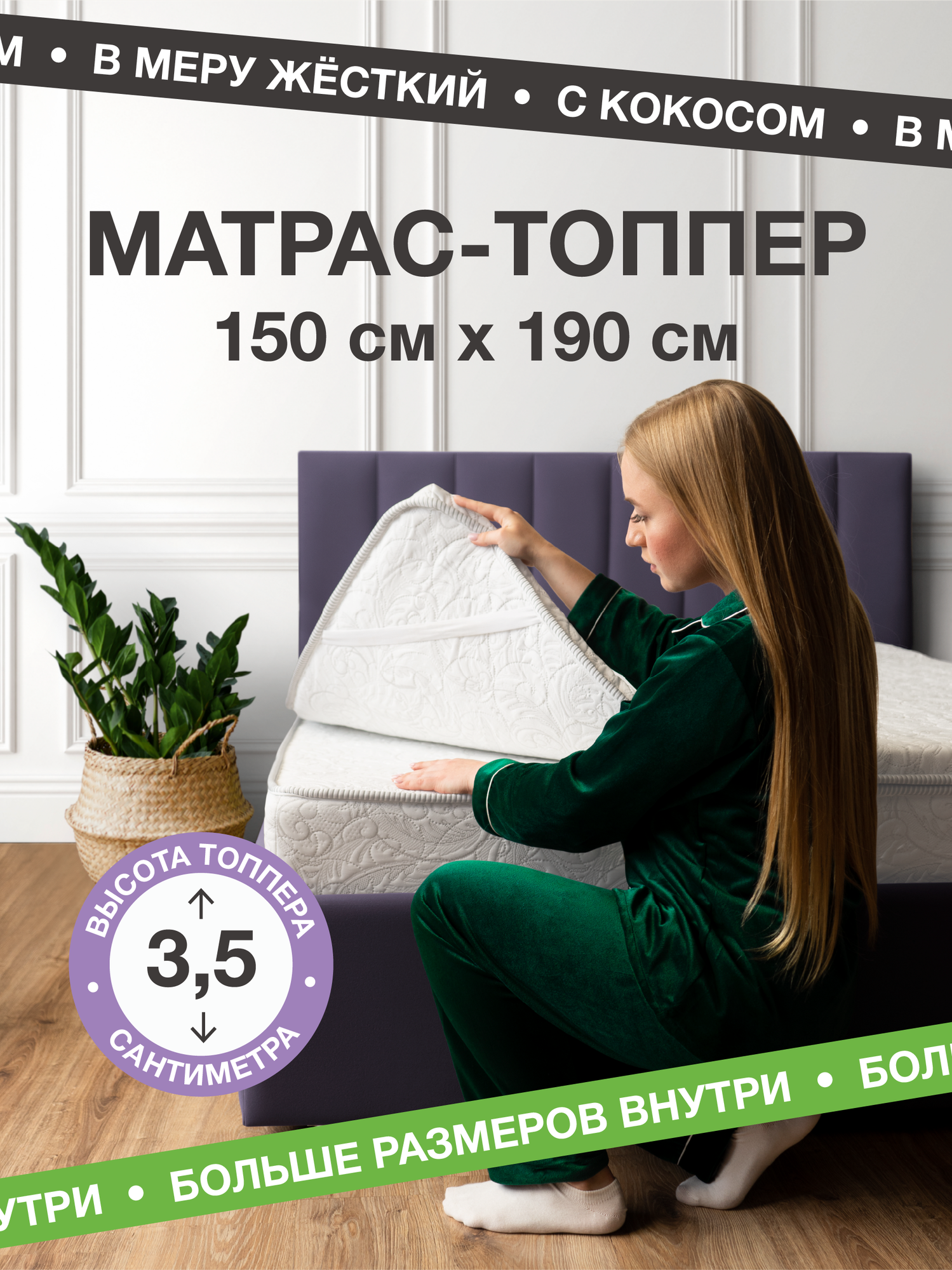 Беспружинный матрас топпер на диван ортопедический топпер наматрасник на резинках на кровать для матраса Ecomfort Латрикс 160х190