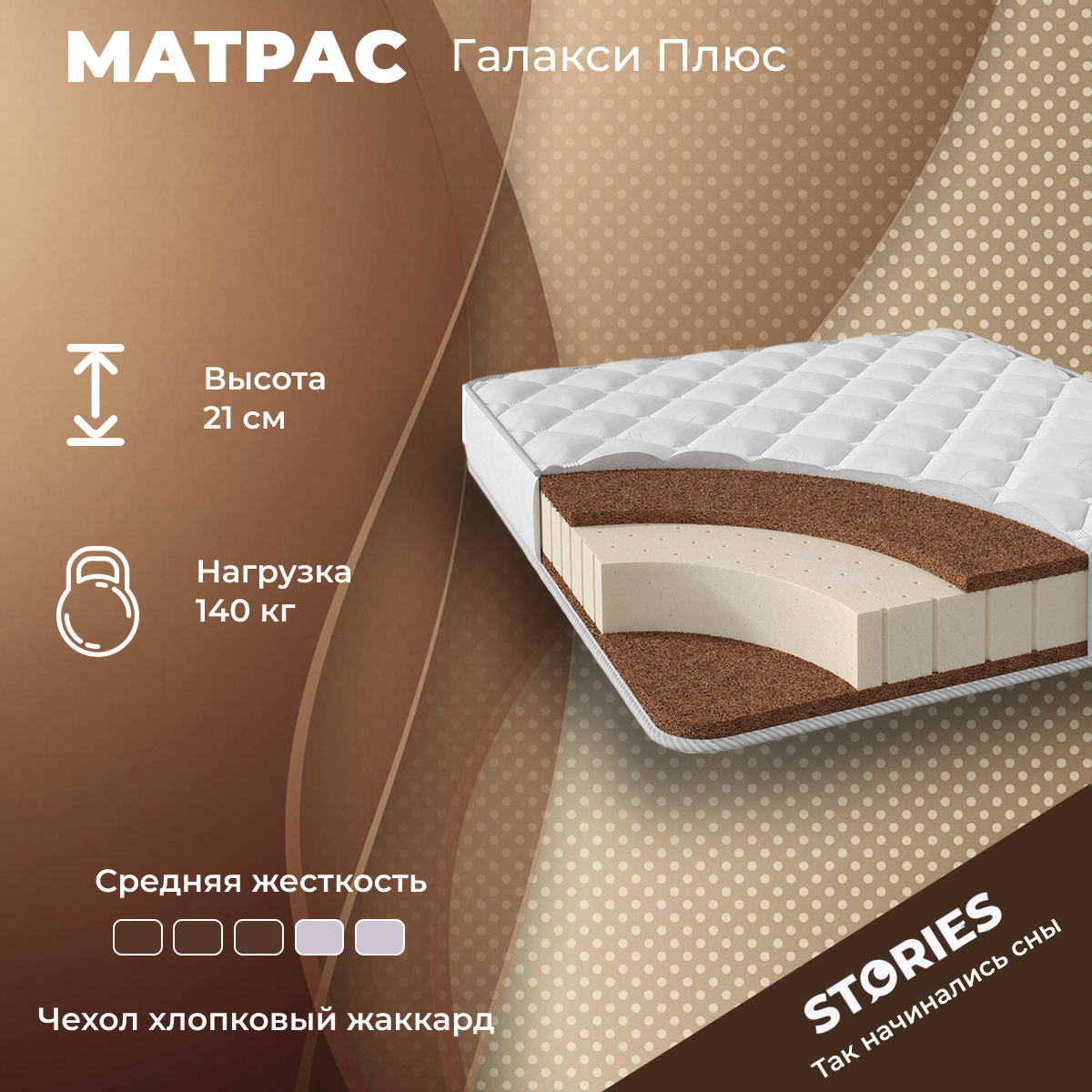 Матрас Беспружинный Stories Галакси Плюс 140х180х21 информация:
