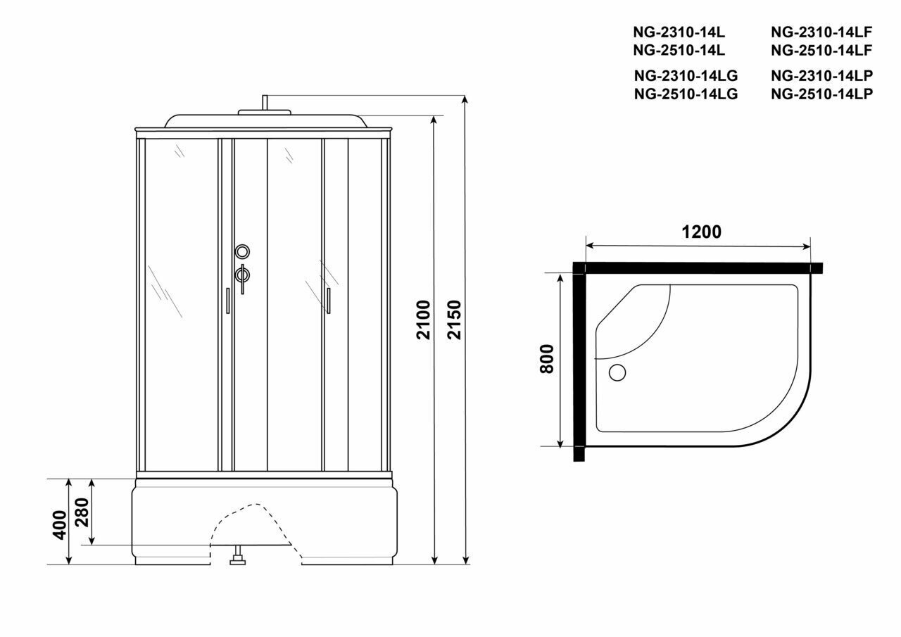 Душевая кабина Niagara Classic NG-2310-14LG 1200х800х2150 информация: