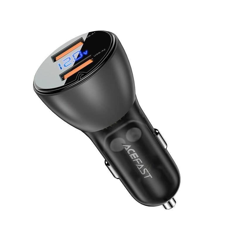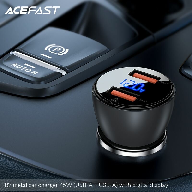 10 цен на Автомобильное зарядное устройство ACEFAST B7 metal car charger 45W USB-A + USB-A with digital display с цифровым дисплеем. Цвет: черный/полупрозрачный черный