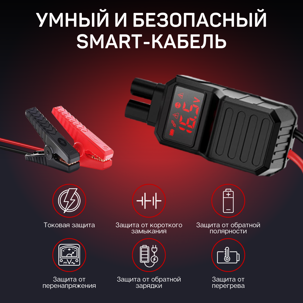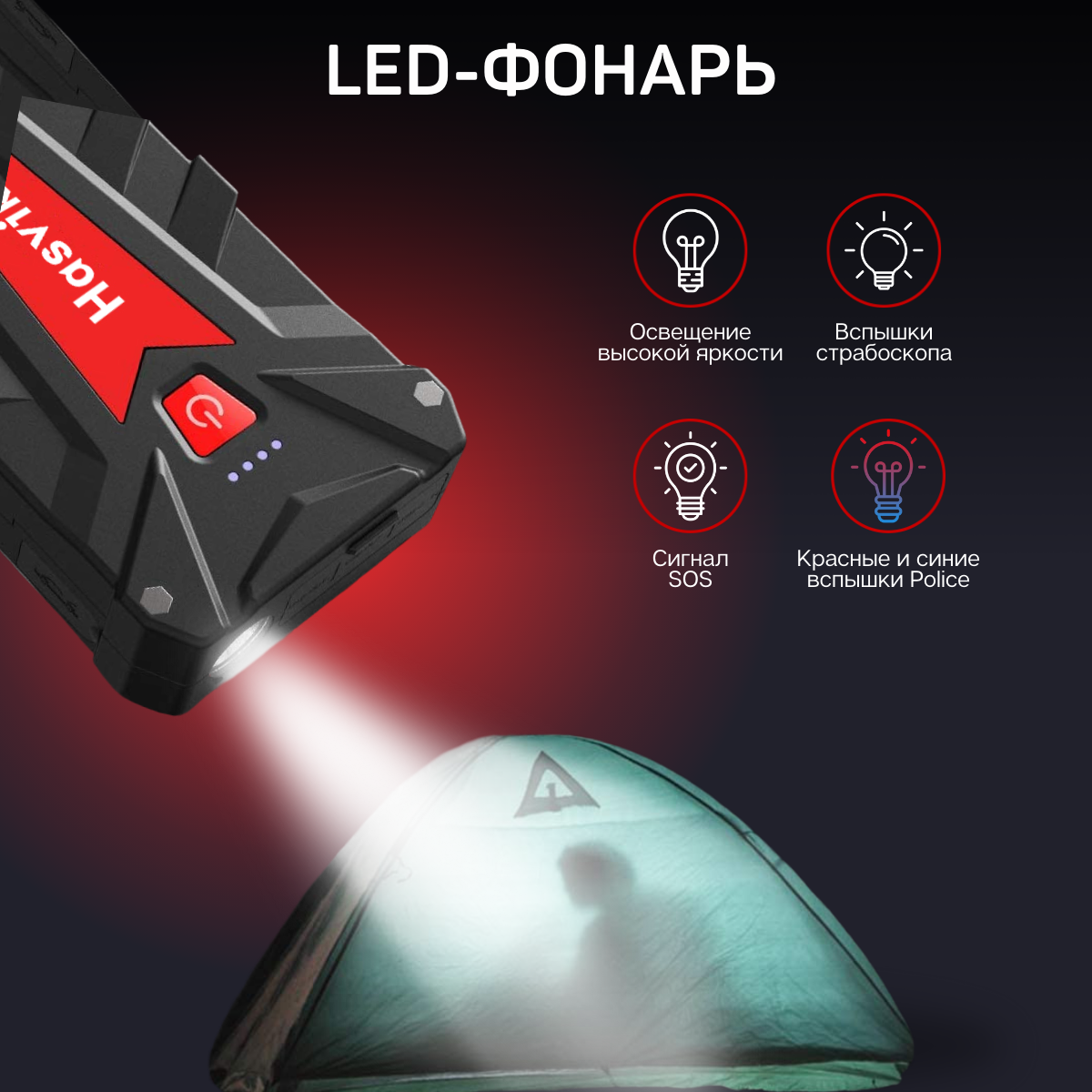 Пусковое устройство для авто, LED фонарь, черный матовый, 800 А, 18 см