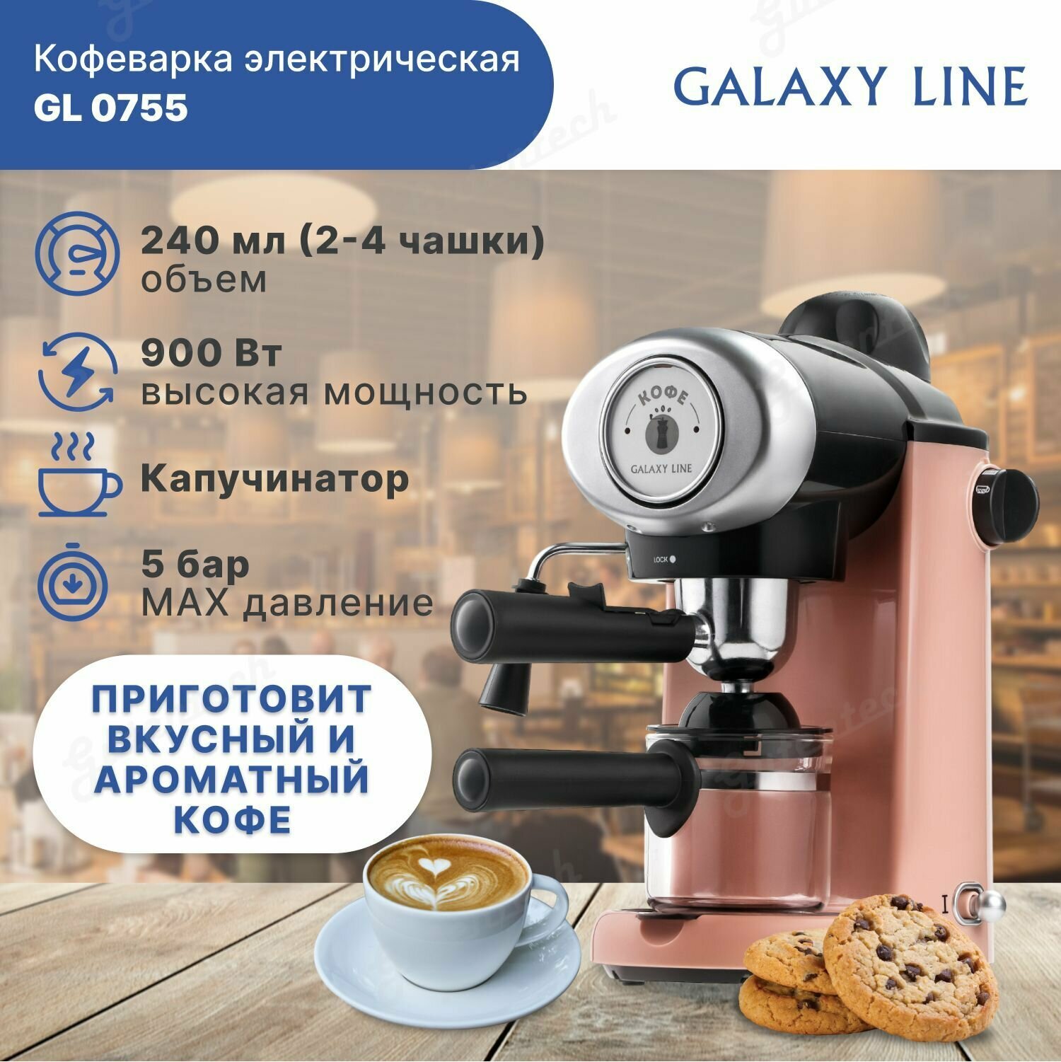 10 цен на Кофеварка эспрессо Galaxy LINE GL 0755 коралловая 900Вт, 5 бар 240 мл (2 - 4 чашки)