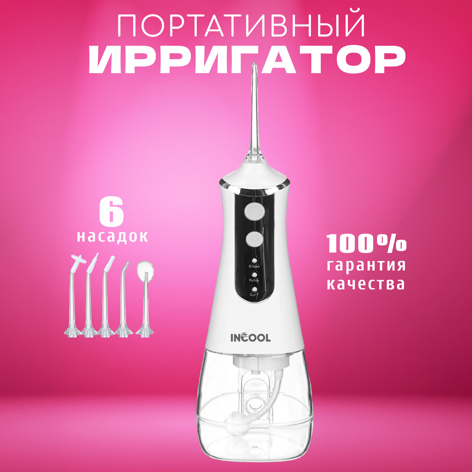 Ирригатор для зубов INCOOL, ирригатор для полости рта, 6 насадок, 3 режима мощности, 350 мл информация: