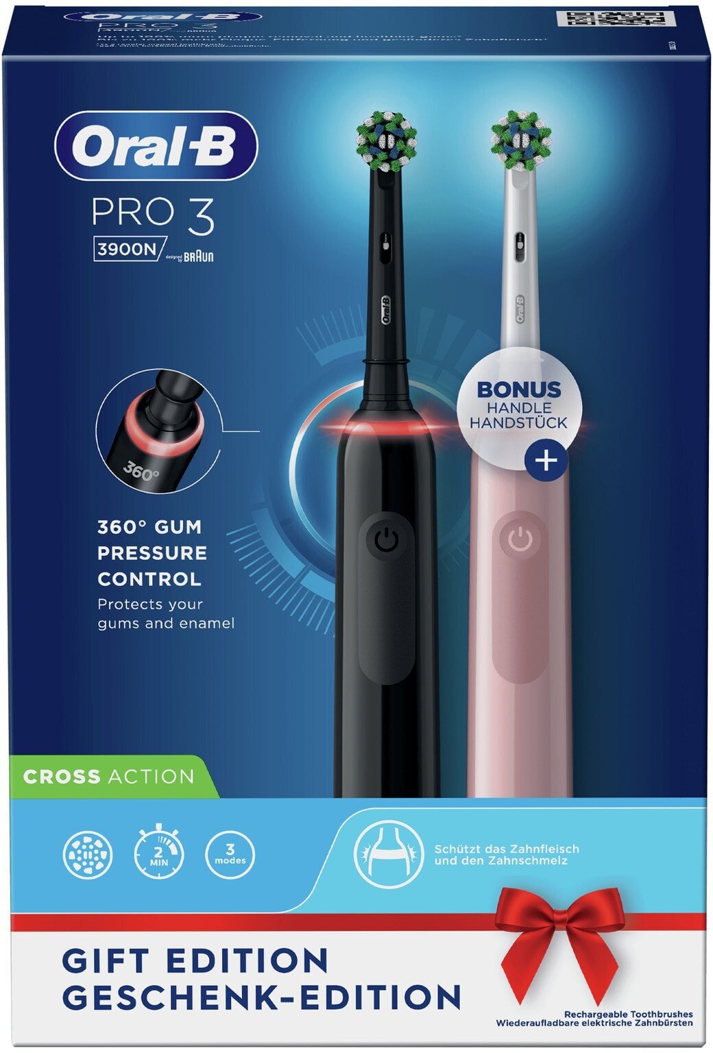 Набор электрических зубных щеток ORAL-B Pro3 3900N Sens, белая и черная