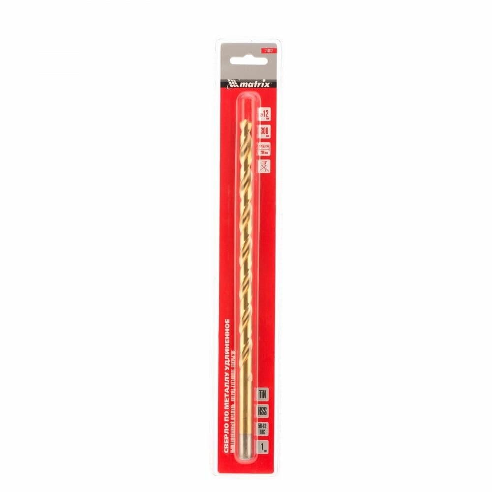 Сверло спиральное по металлу 12 x 300 мм, HSS, нитридтитановое покрытие Matrix (714312) информация: