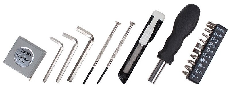 Отзывы на Набор инструментов 19 в кейсе с битами, отвертками, шестигранными ключами, рулеткой и ножом