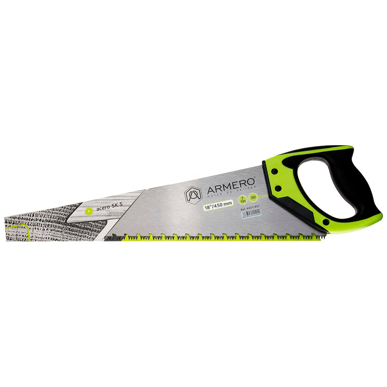 Ножовка по дереву, 450мм, 3d, крупный зуб, Armero, A531/450