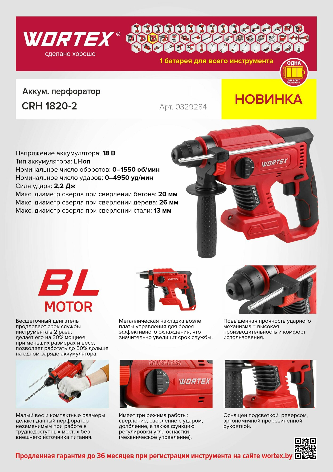 Перфоратор аккумуляторный WORTEX CRH 1820-2 ALL1 (0329284) информация: