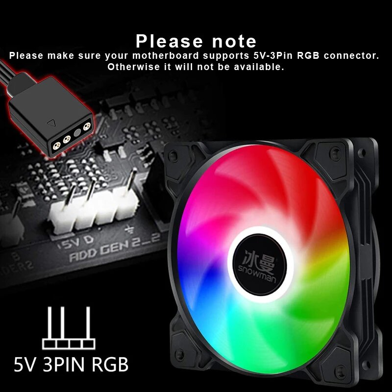 SNOWMAN PWM 4-контактный RGB 120-миллиметровый вентилятор для корпуса ПК, бесшумный вентилятор охлаждения 12 см, бесшумный компьютер, вентилятор для охлаждения процессора, вентиляторы SYNC ARGB, 12 В постоянного тока информация: