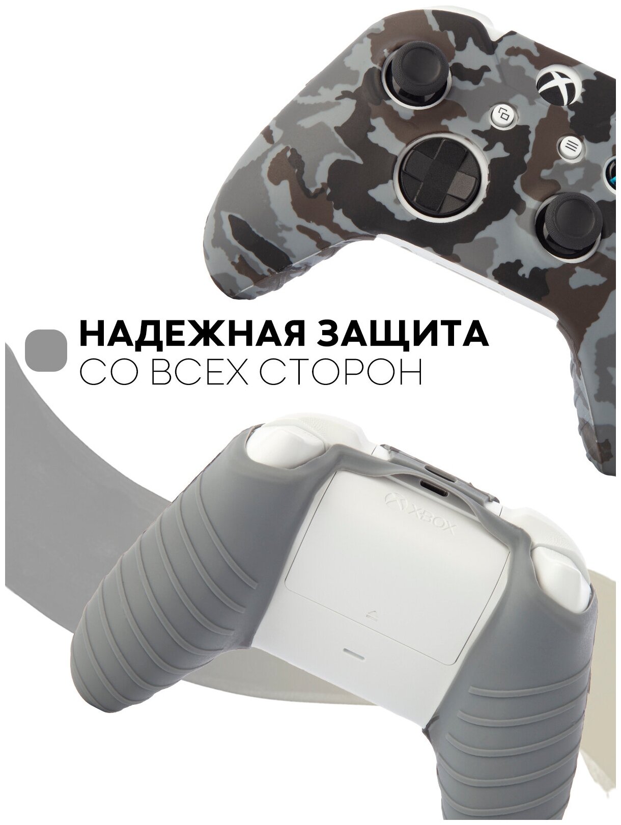 Защитный силиконовый чехол для геймпада Microsoft Xbox One, Xbox Series S, Series X (контроллер Икс Бокс 1, Серия С, Серия Икс, Экс) серый, камуфляж информация: