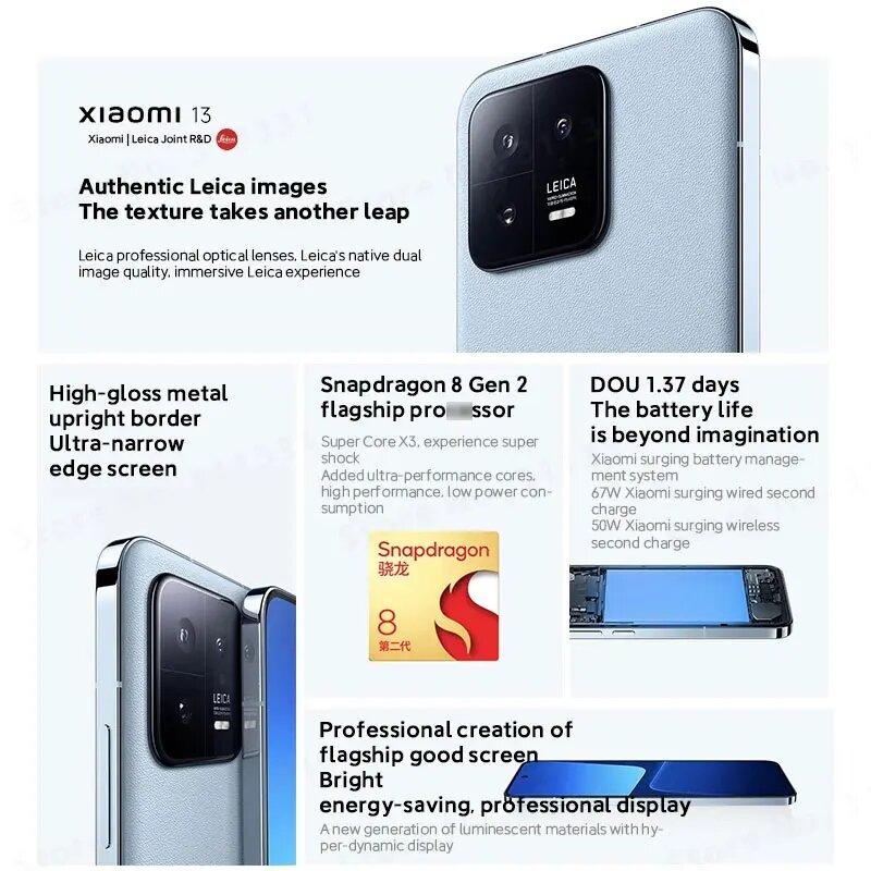 Глобальная прошивкой Xiaomi Mi 13 Snapdragon 8 Gen 2 120 Гц OLED Дисплей 50Мп Leica Камера HyperCharge 67Вт 4500 мАч IP68 MIUI 14 информация: