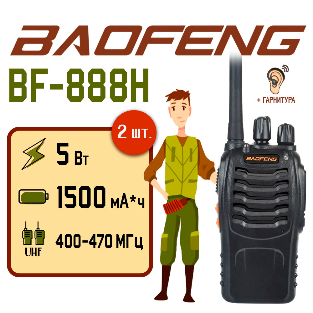 Портативная радиостанция Baofeng BF-888H 5 Вт / Черная комплект 2 шт / UHF информация: