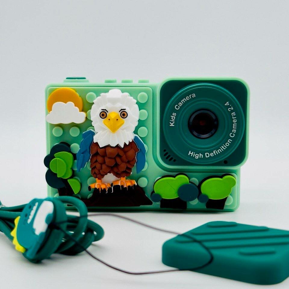 Детский цифровой фотоаппарат с селфи камерой и головоломкой для девочки, мальчика, игрушечная фотокамера для детей ударопрочная 1080p Full-HD, Орел для ребенка информация: