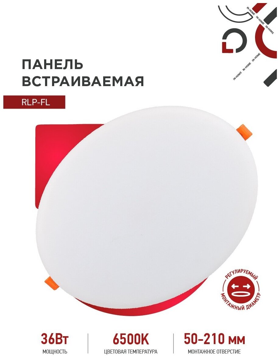 IN HOME Панель сд встр безрам RLP-FL 10Вт 230В 6500К 900Лм 100мм с рег. монтаж. 45-80мм белая IP20 (арт. 4690612036724) 314 ₽