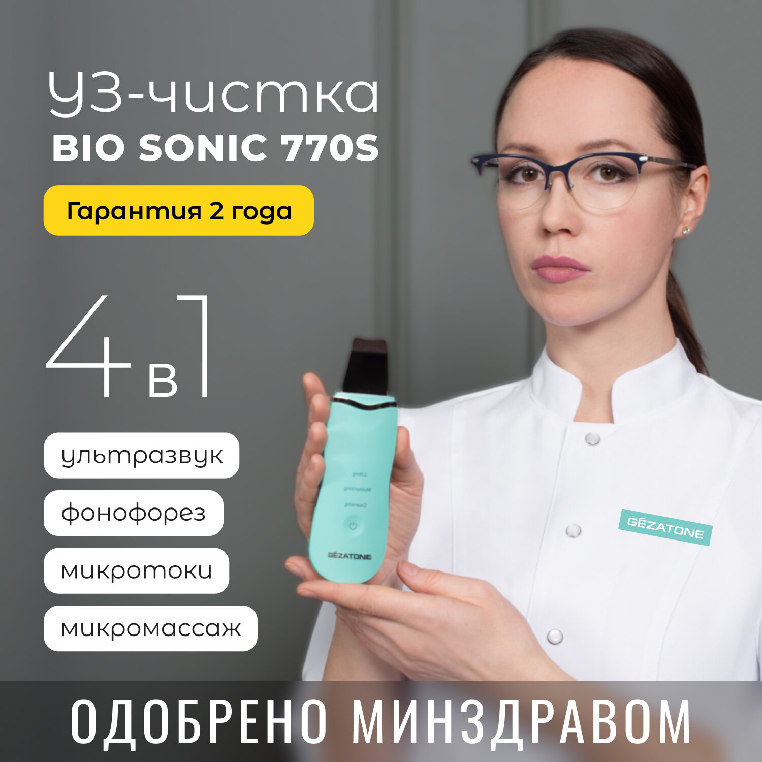 Ультразвуковая чистка, микротоки и фонофорез лица, 4 в 1 Bio Sonic 770 S, Gezatone