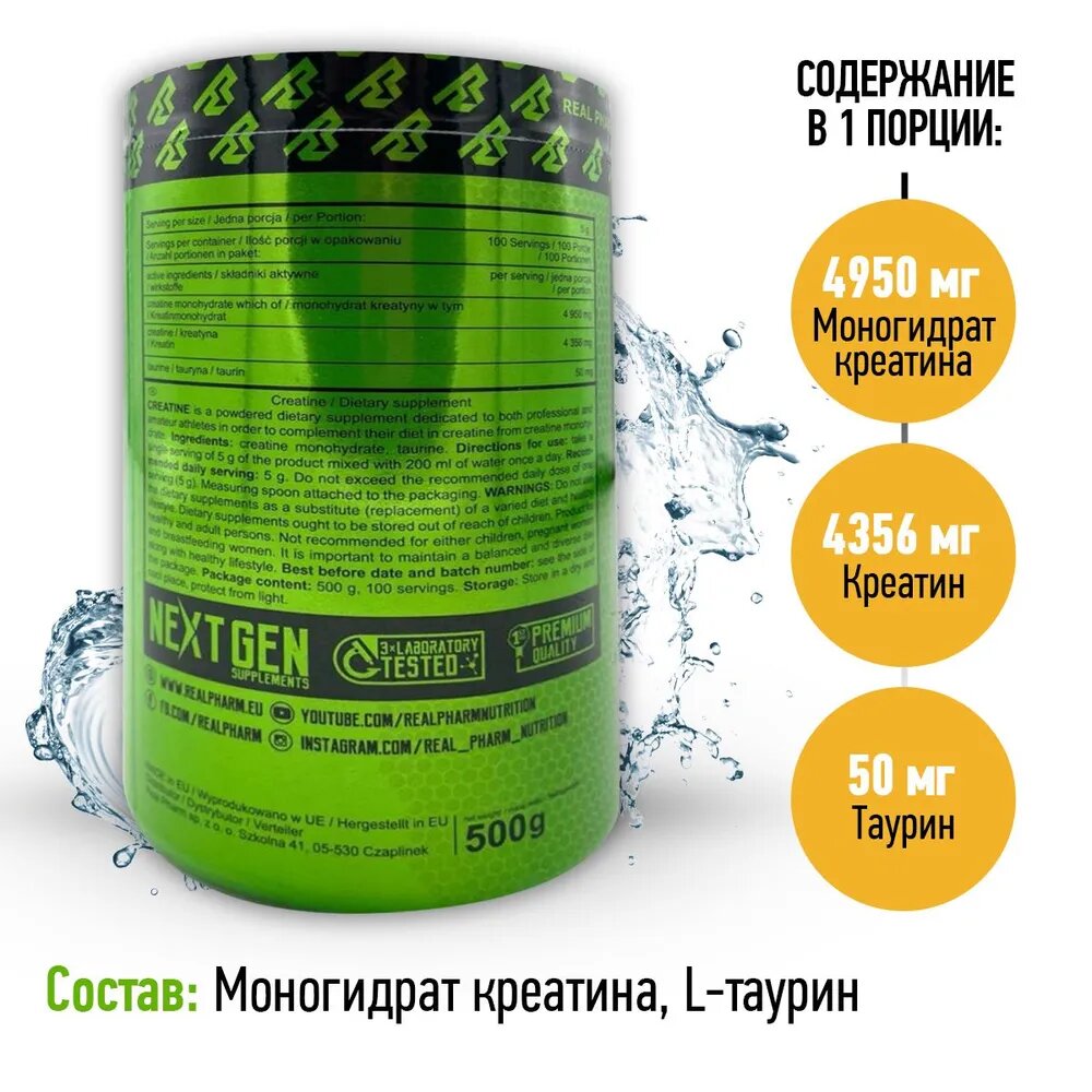 Креатин моногидрат Real Pharm Creatine 500 г, Без вкуса информация: