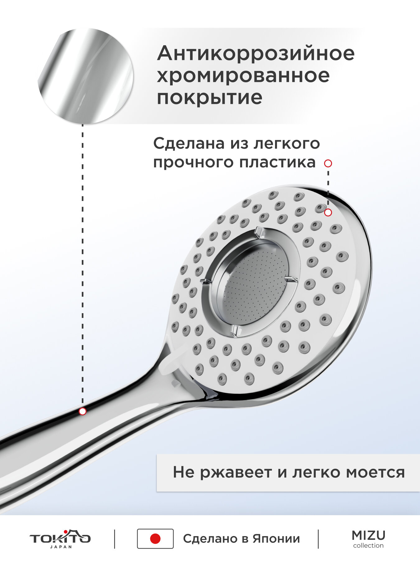 Лейка для душа TOKITO MIZU, антиизвестковая, хромированная, круглая 1 079 ₽