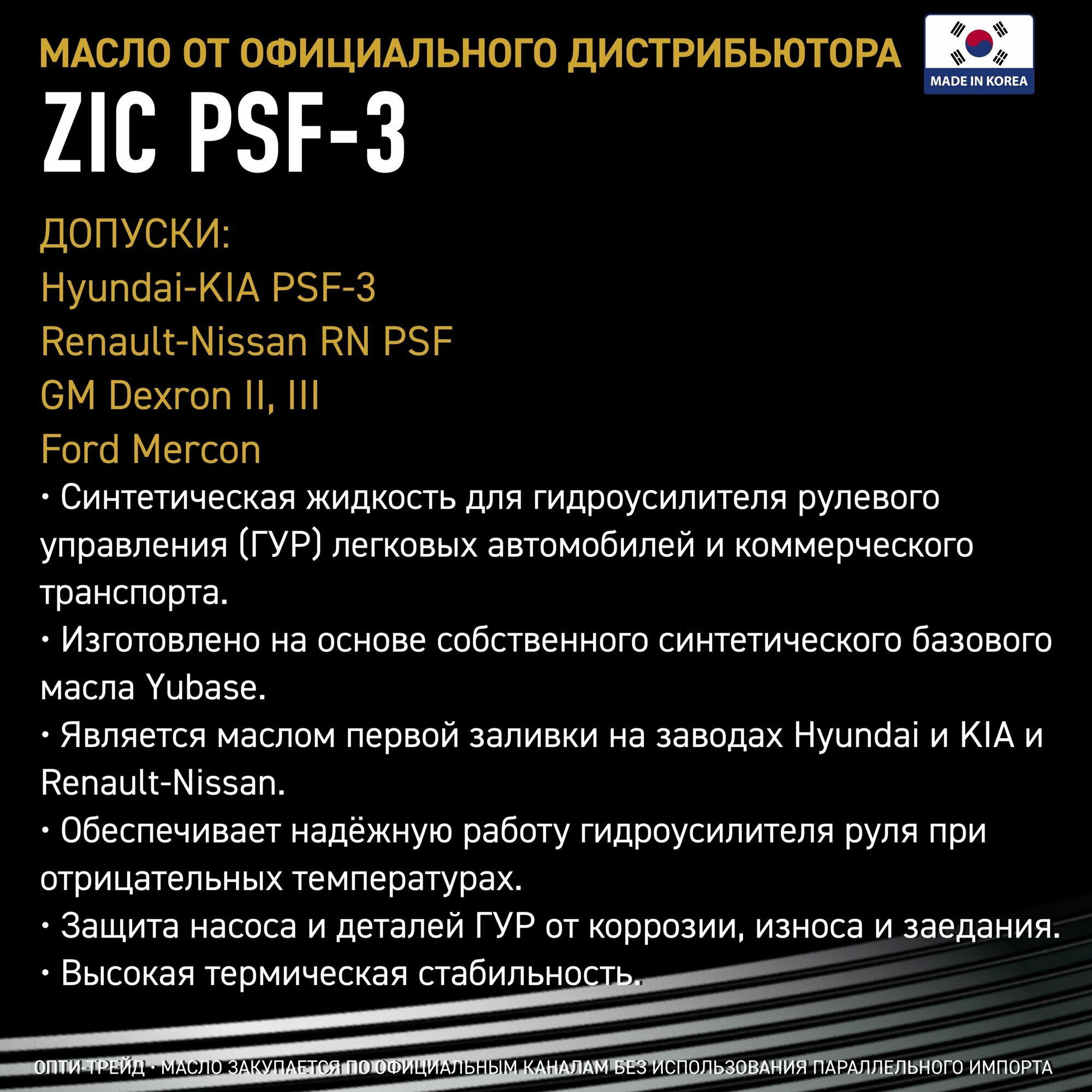 ZIC SK PSF-3 (1L) жидкость для гидроусилителя руля! синт.\Hyundai-KIA PSF-3, GM Dexron II, III, RN PSF ZIC / арт. 132661 - (1 шт)