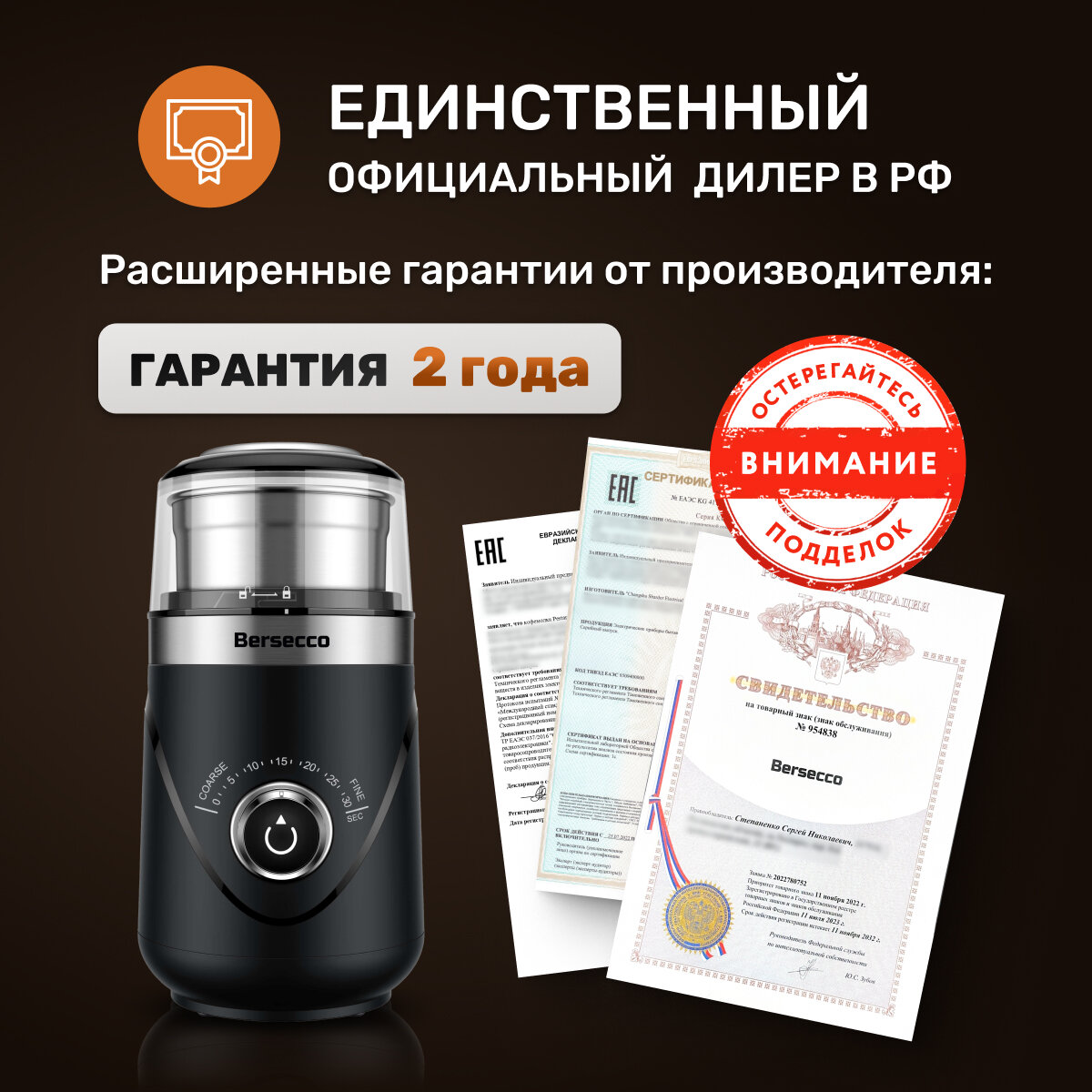 Кофемолка электрическая со съемной чашей, мельница для зерна и кофе с регулировкой помола Bersecco Pestare E5 информация: