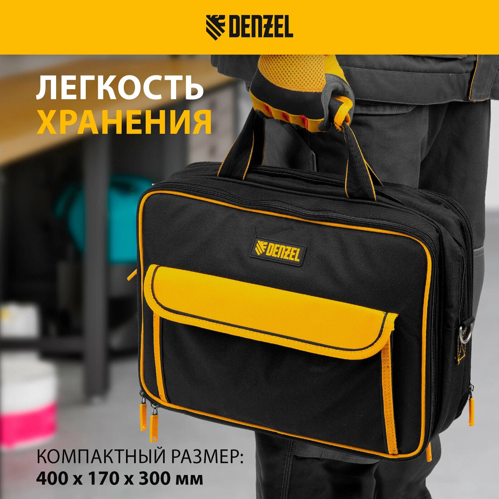 Сумка для инструмента Denzel 400х170х300 мм, 3 отделения, 28 карманов, наплечный ремень 90295 информация: