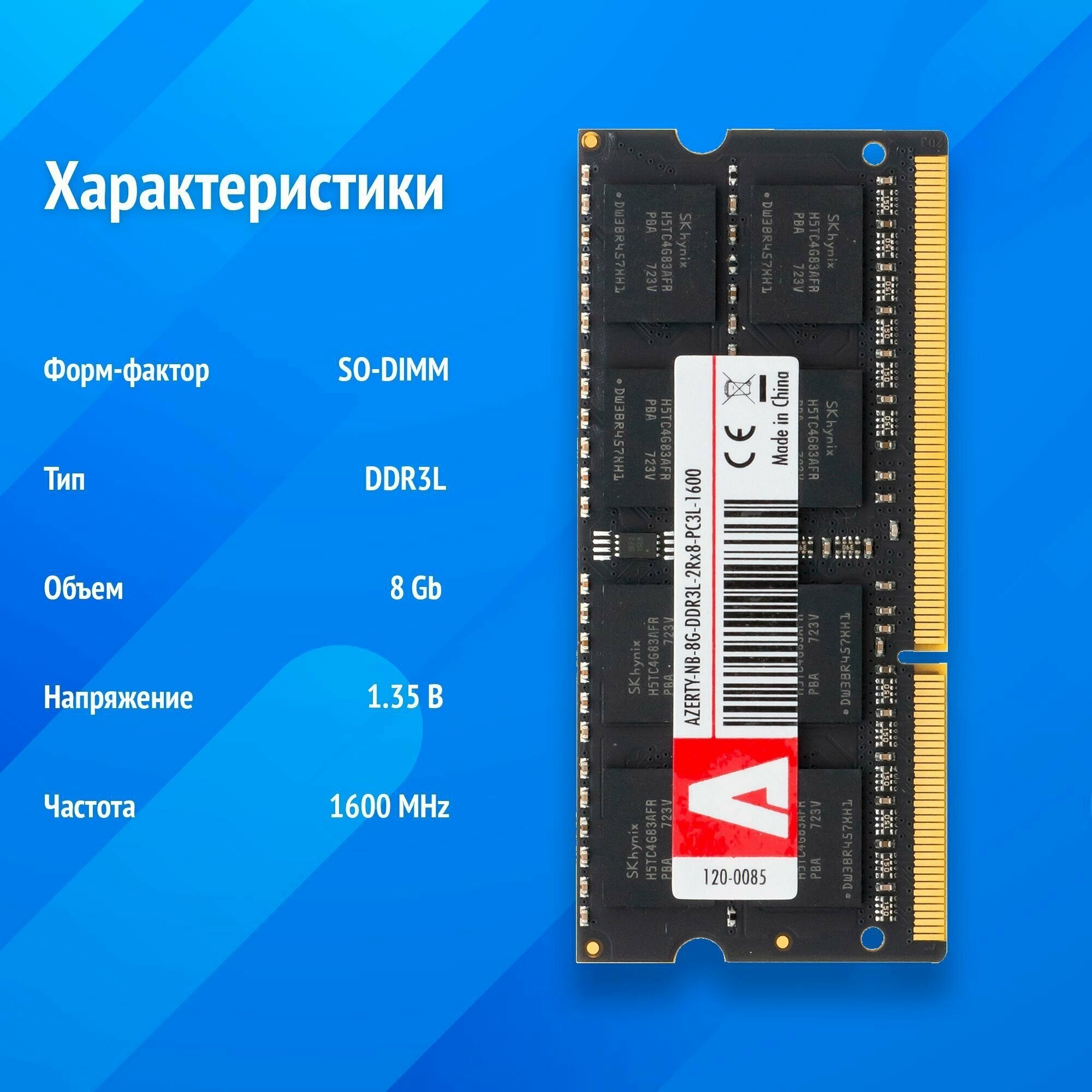Оперативная память Azerty SODIMM DDR3L 8 Гб 1600 МГц информация: