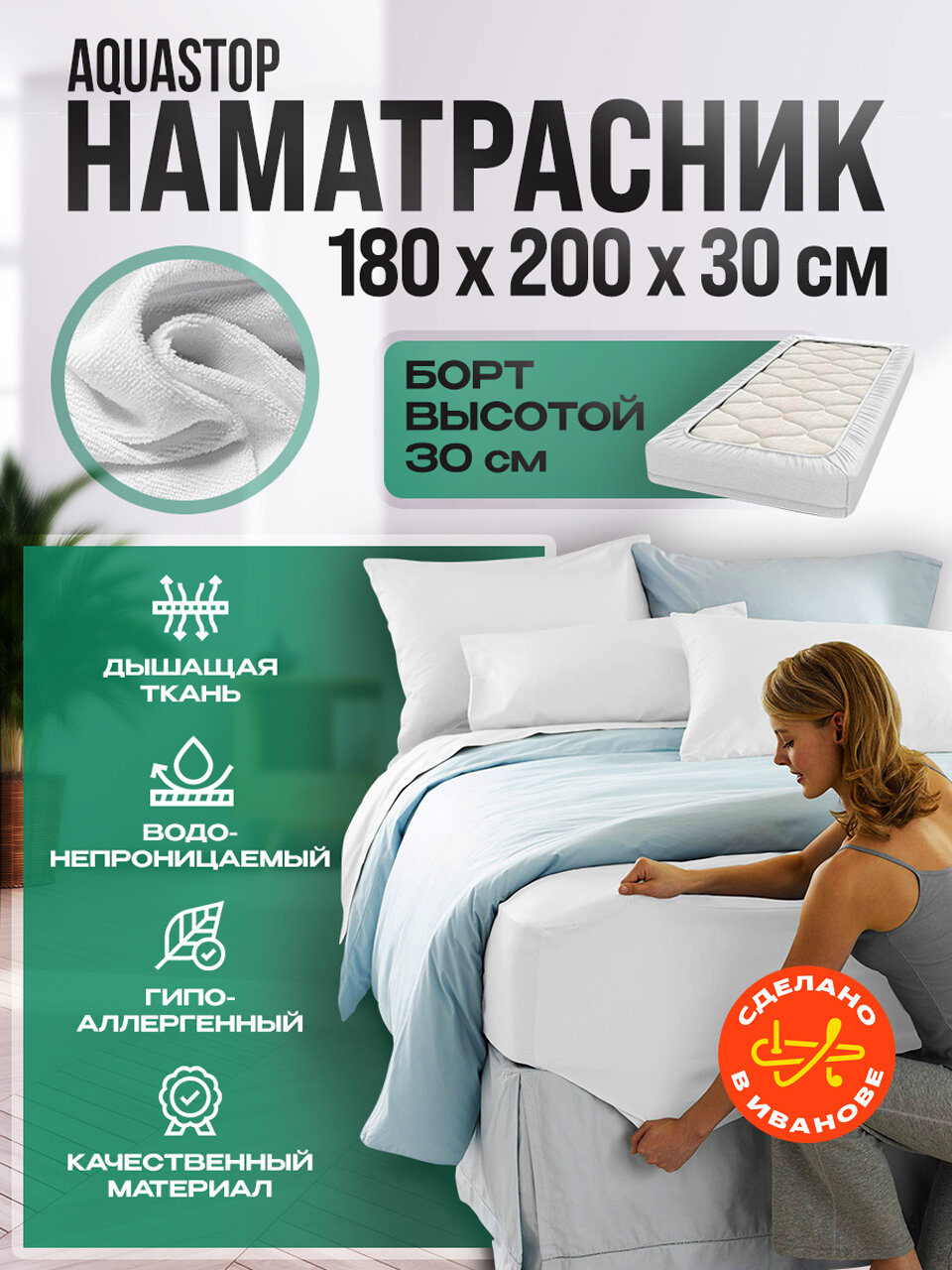Отзывы на Наматрасник непромокаемый 180х200х30, борт 30см, наматрасник водонепроницаемый