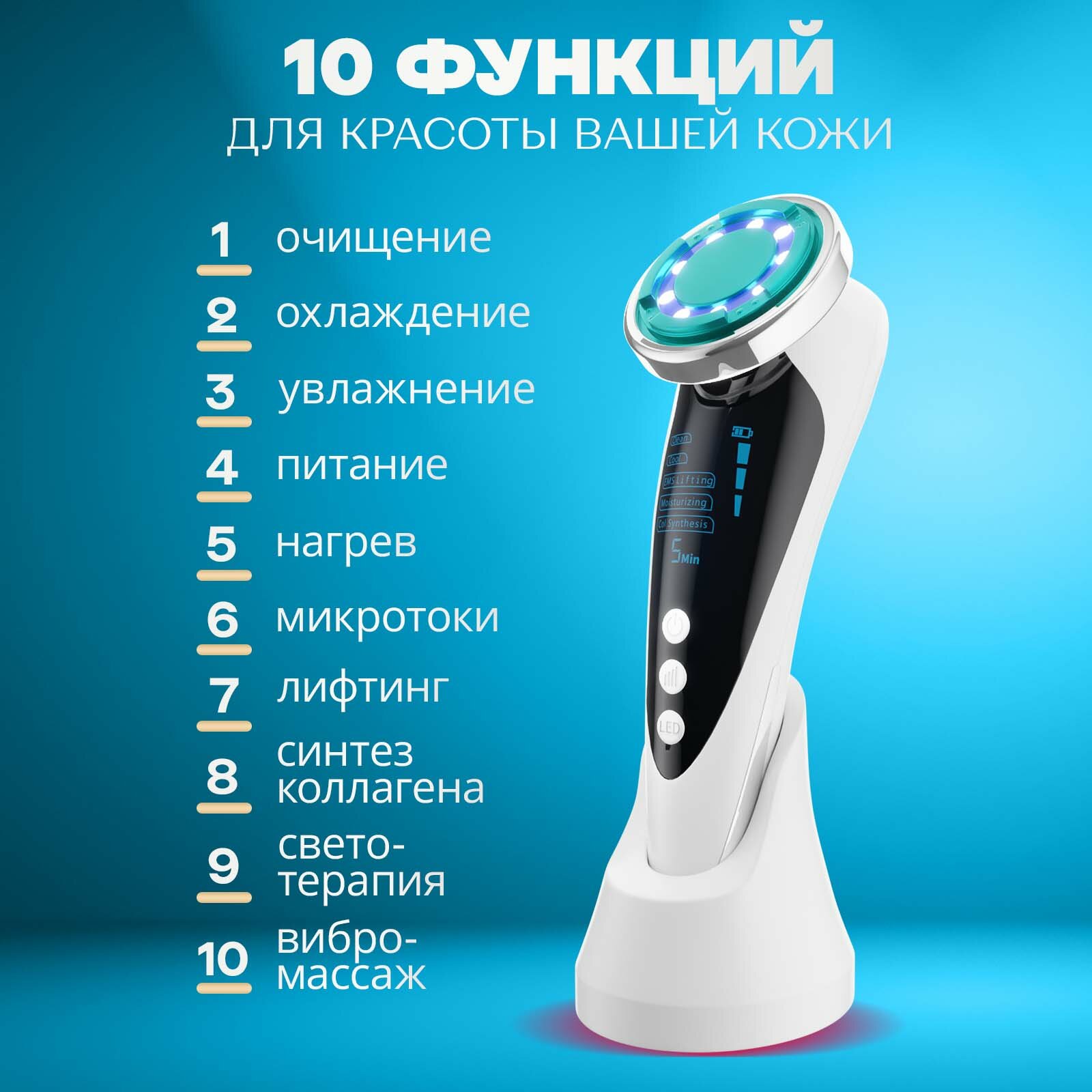 | Принцип работы | RF-лифтинг / ионизация / микротоки / светотерапия / ультразвук |