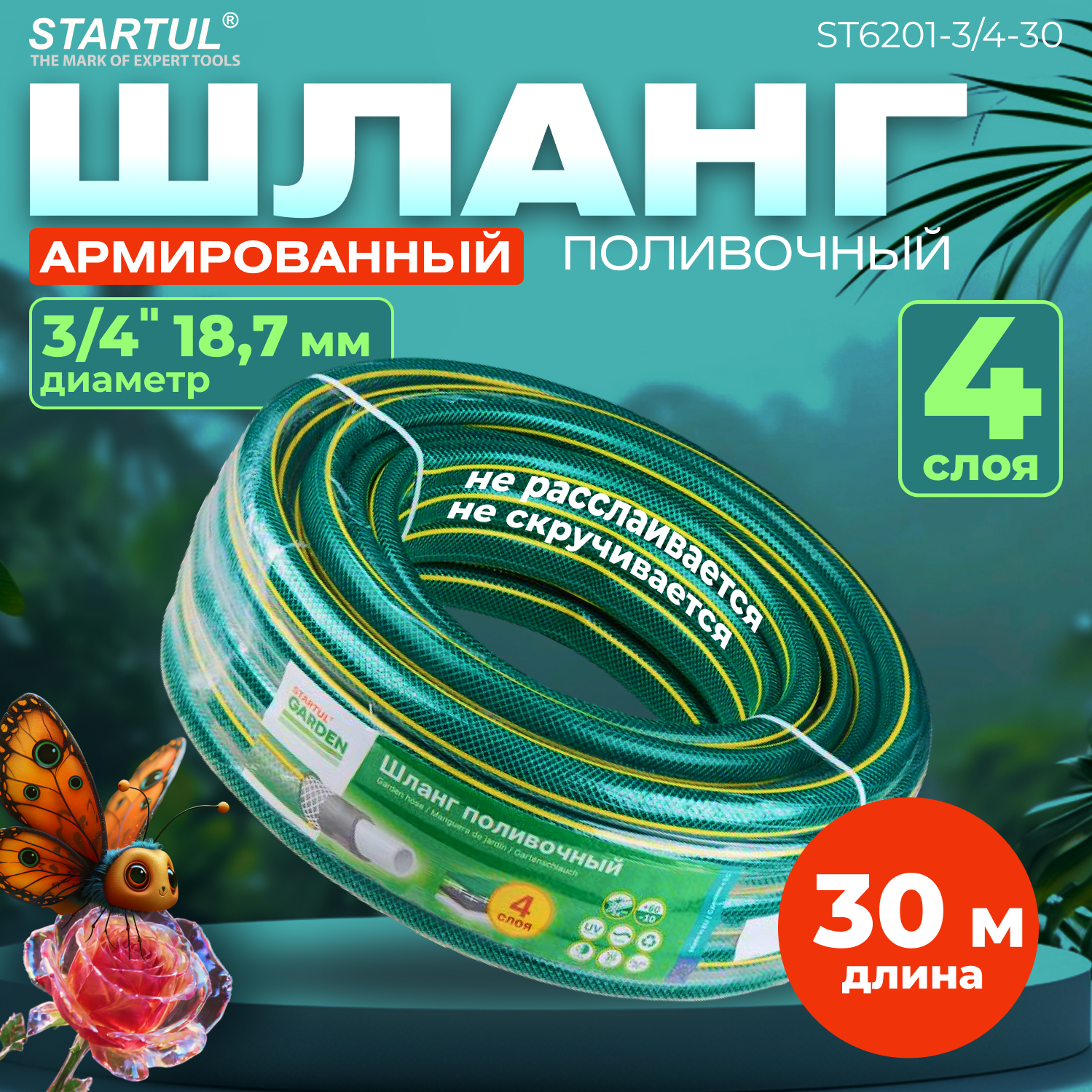 Отзывы на Шланг поливочный армированный 3/4" 30м STARTUL GARDEN (ST6201-3/4-30)