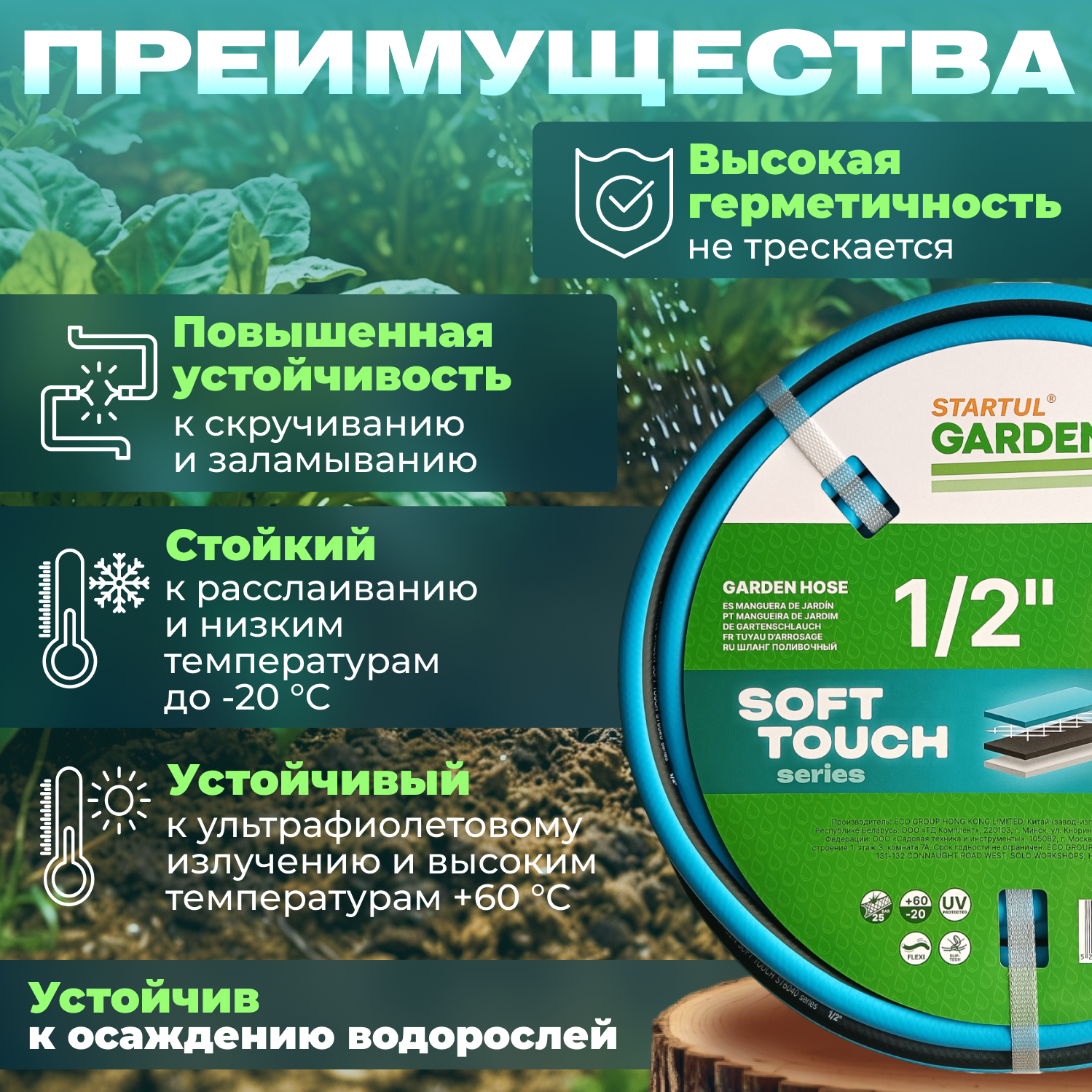 Шланг поливочный армированный 1/2" 50м STARTUL GARDEN SOFT TOUCH (ST6040-1/2-50) (4 слоя) информация: