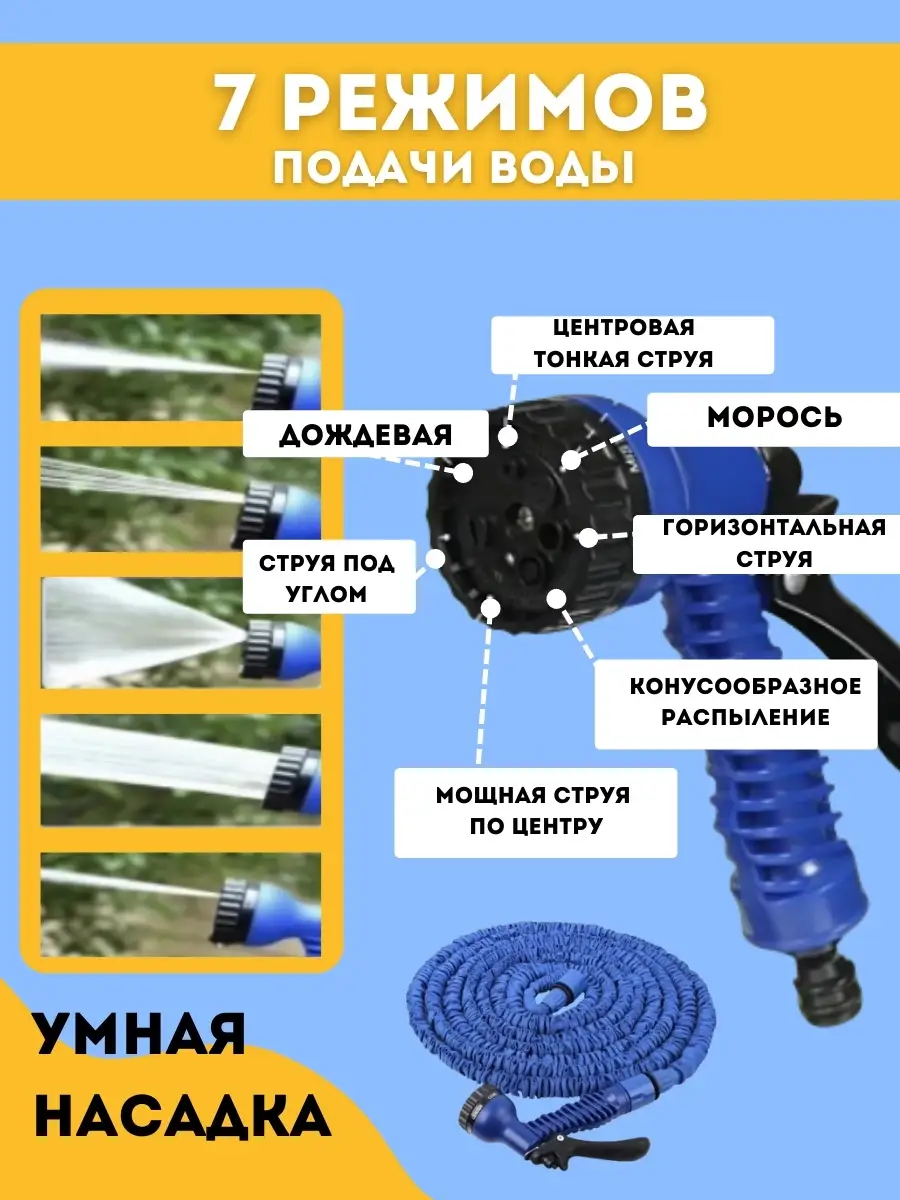 Шланг садовый растягивающийся для полива и мойки автомобиля