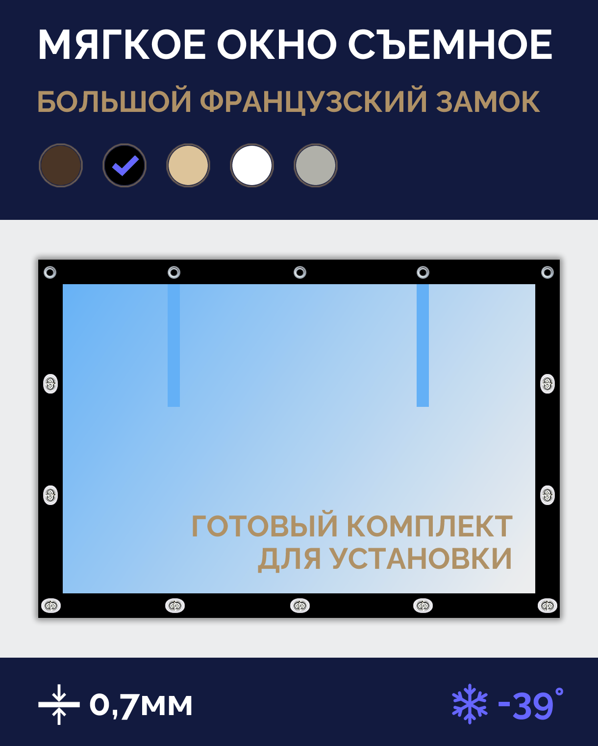 Мягкое окно Софтокна 110х150 см, Прозрачная пленка 0,7мм, Большой французский замок, Черная окантовка, Комплект для установки 5 713 ₽