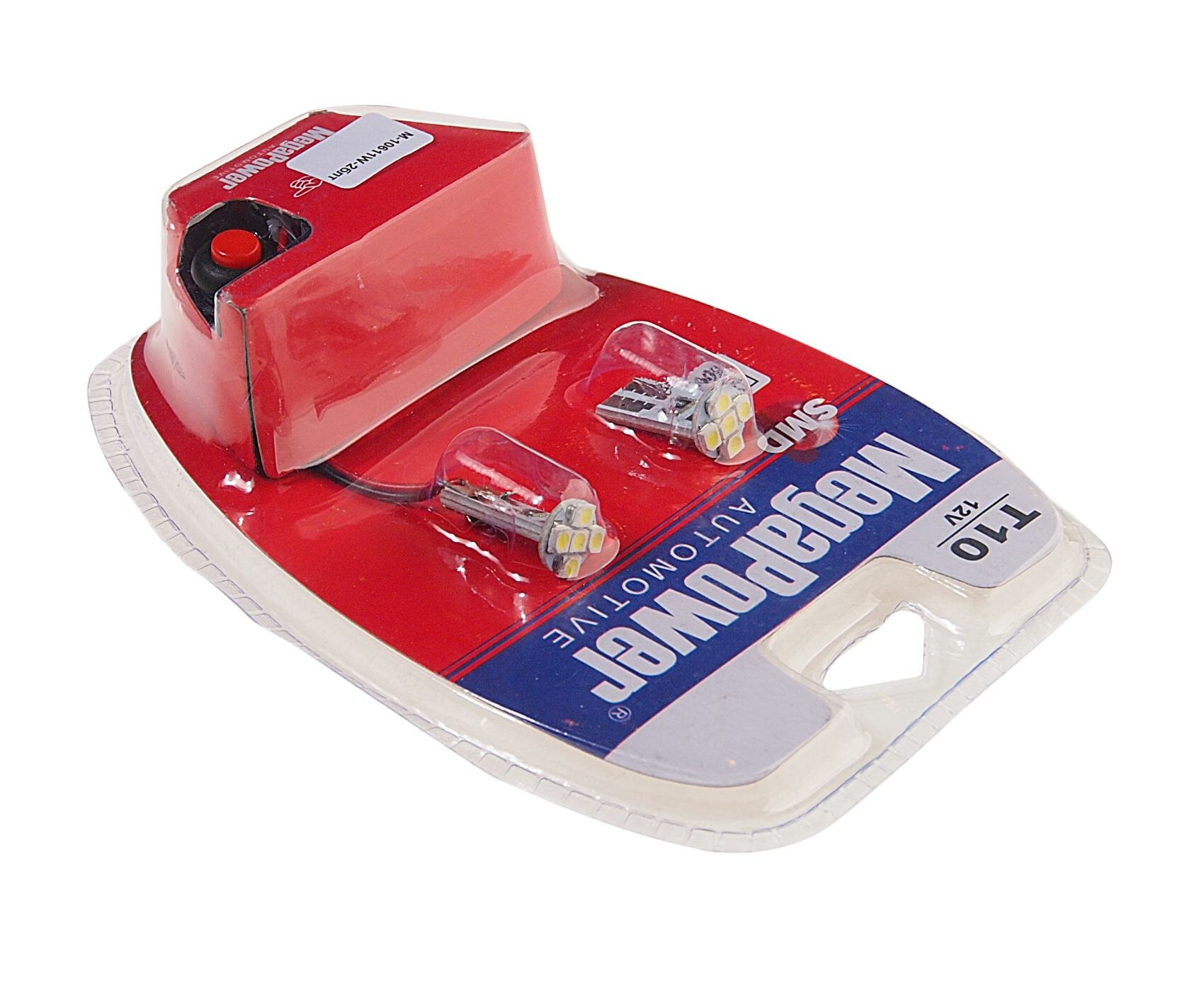 Светодиодная лампа T10W (W2,1x9,5d) 5 SMD 3528 WHITE блистер с тестером (2 шт) 6000K 90лм 12V MEGAPOWER/Автолампы