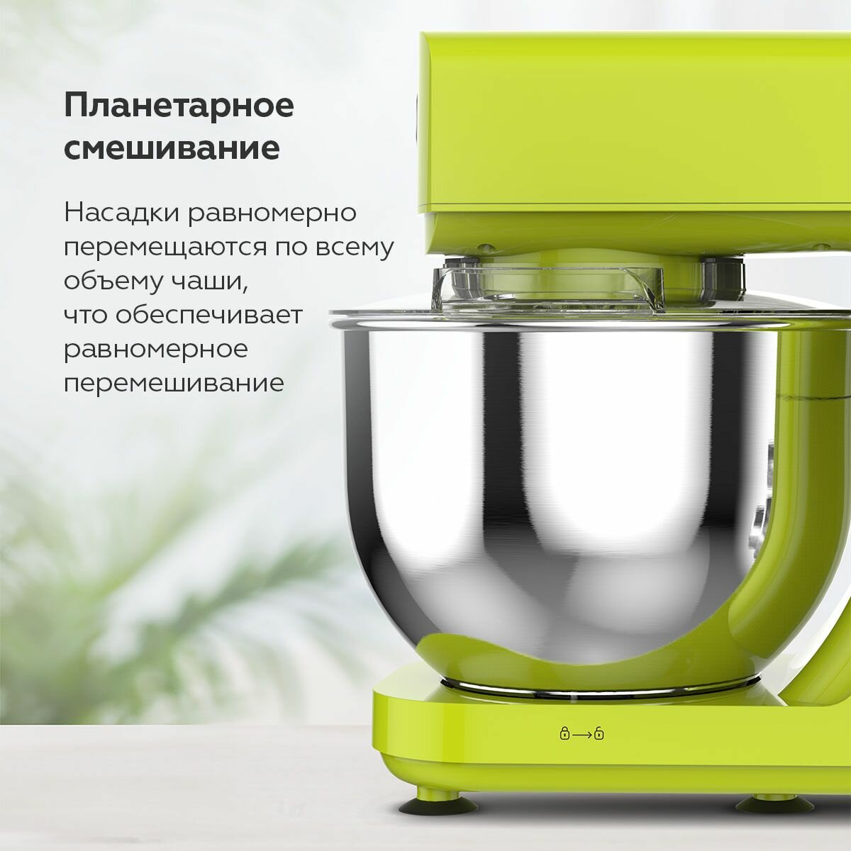 Планетарный миксер с чашей для кухни BQ MX621 Лайм Мощность 1600 Вт 6 скоростей Объем чаши 5л 7 178 ₽