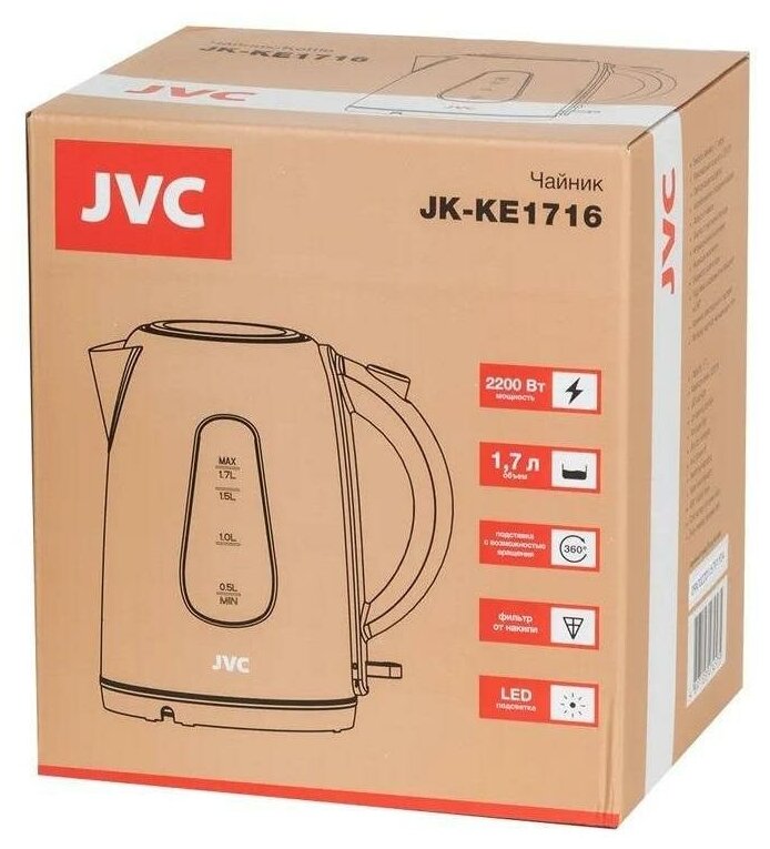 10 цен на Чайник электрический JVC JK-KE1716 1,7 л, 2200 Вт, серебристый/черный