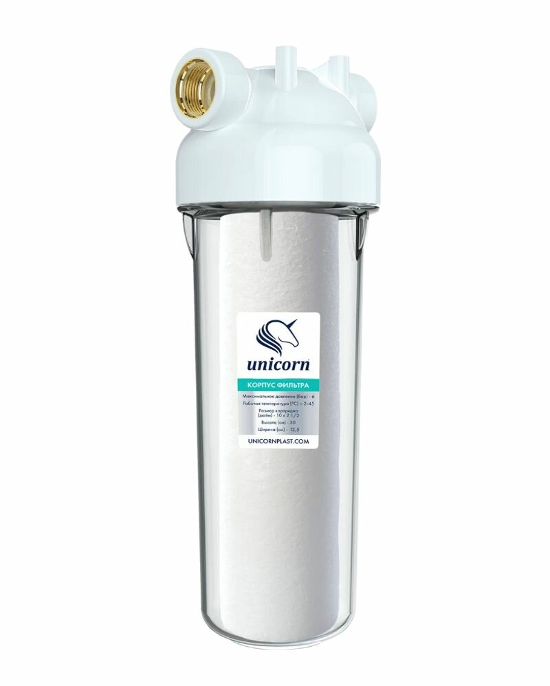 Фильтр для воды, магистральный фильтр для холодной воды 10" с прозрачным корпусом Unicorn KSBP 1/2" информация: