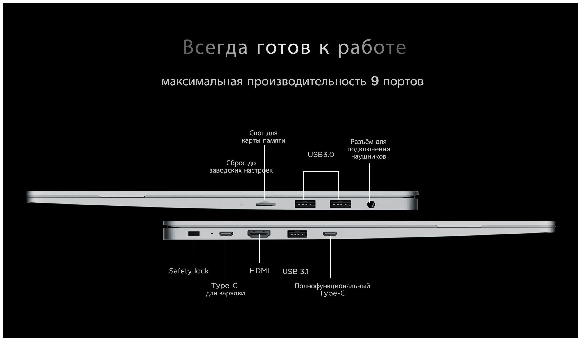 Ноутбук Tecno Megabook S1 15.6″/Core i7/16/SSD 1024/Iris Xe Graphics/Windows 11 Home 64-bit/серый космос+серый 140 192 ₽