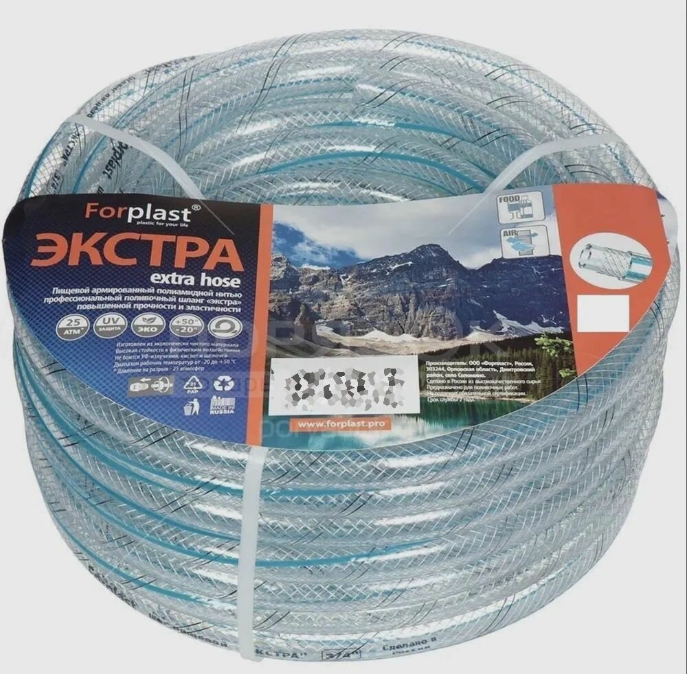 10 цен на Шланг поливочный пищевой армированный Forplast Экстра PRO 3/4 (19 мм), 50 м, морозостойкий, прозрачный