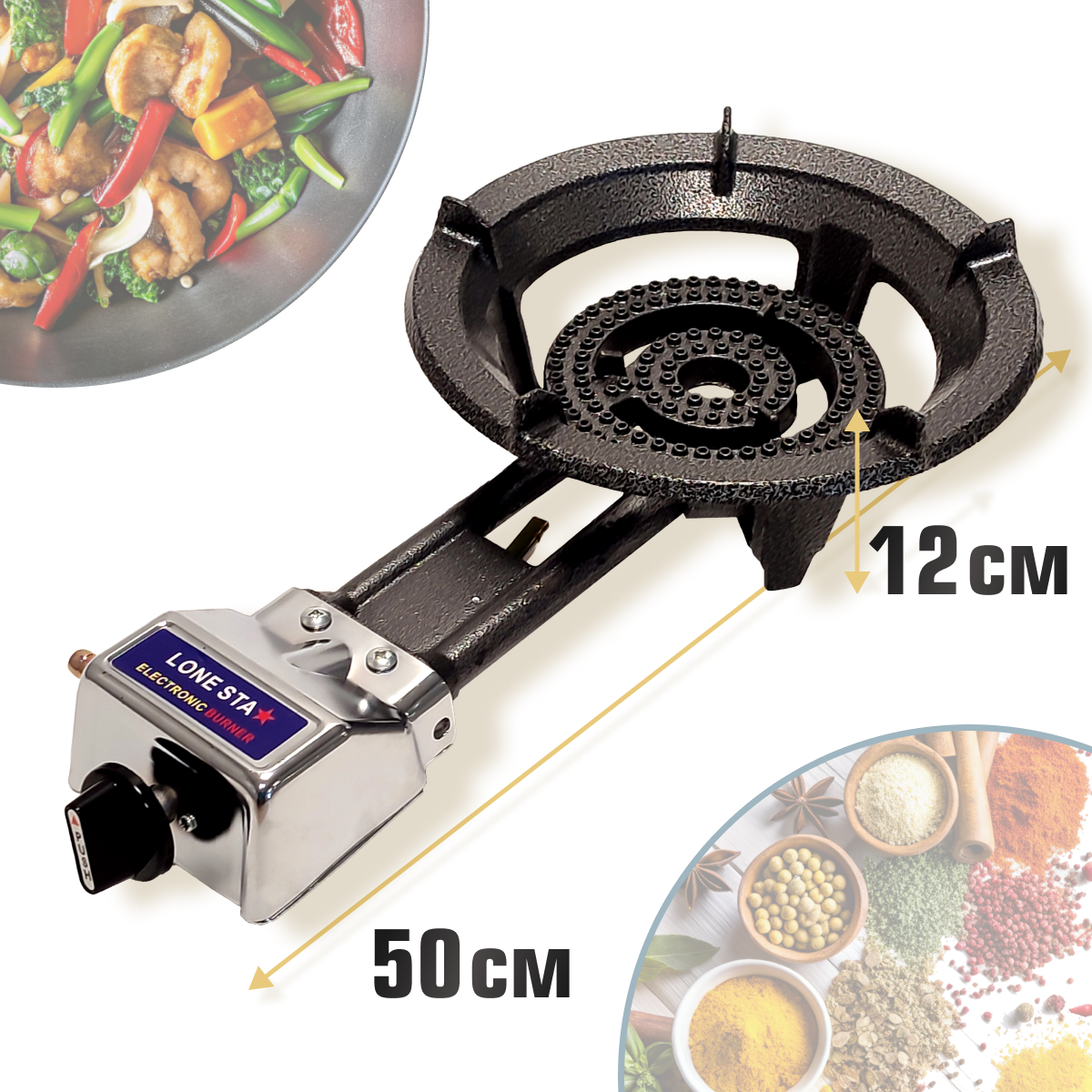 | Подробная комплектация | Газовая горелка WOK, 21 см |
