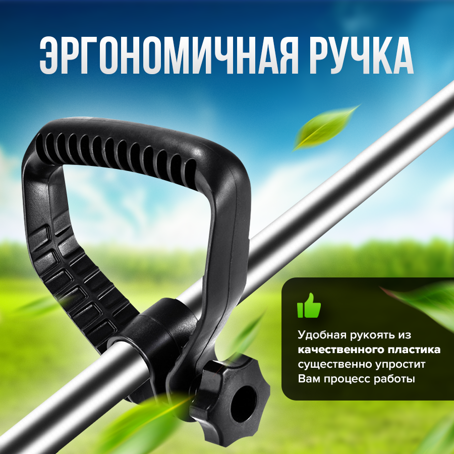 Электрическая ручная косилка травы для дачи/ Триммер-газонокосилка аккумуляторный 2АКБ
