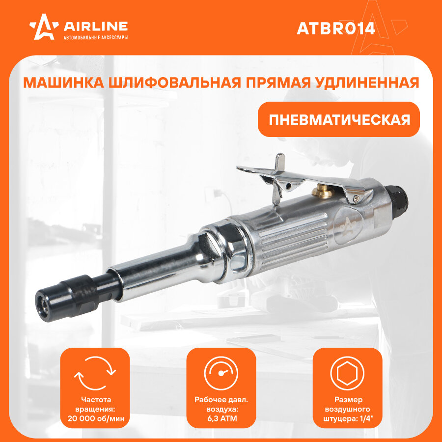 Машинка шлифовальная пневматическая 240мм, 20000 об/мин прямая удлинённая ATBR014 AIRLINE информация: