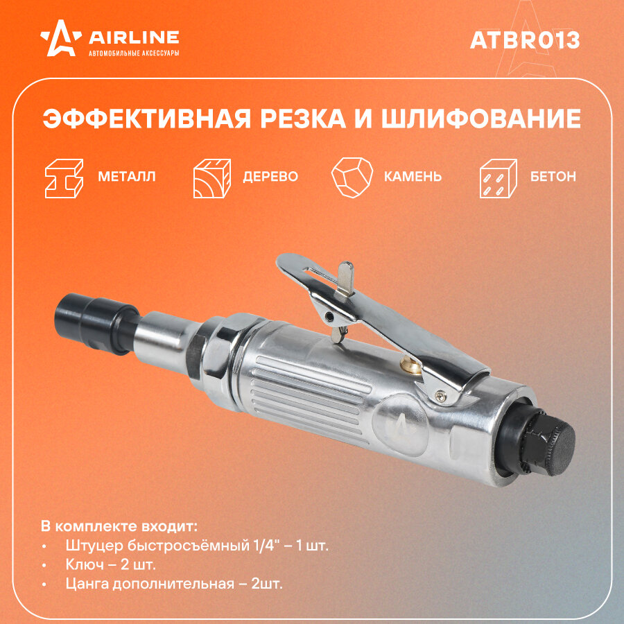 Машинка шлифовальная пневматическая 205мм, 25000 об/мин прямая удлинённая ATBR013 AIRLINE информация: