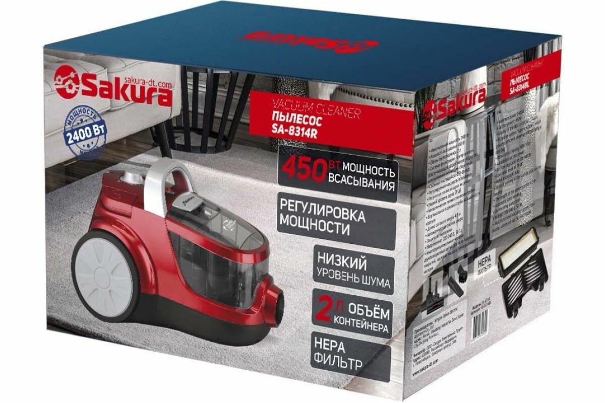 Пылесос Sakura Sa-8314r, 2400/450 Вт, HEPA-фильтр, 2 л, красный Sakura 10062481 .