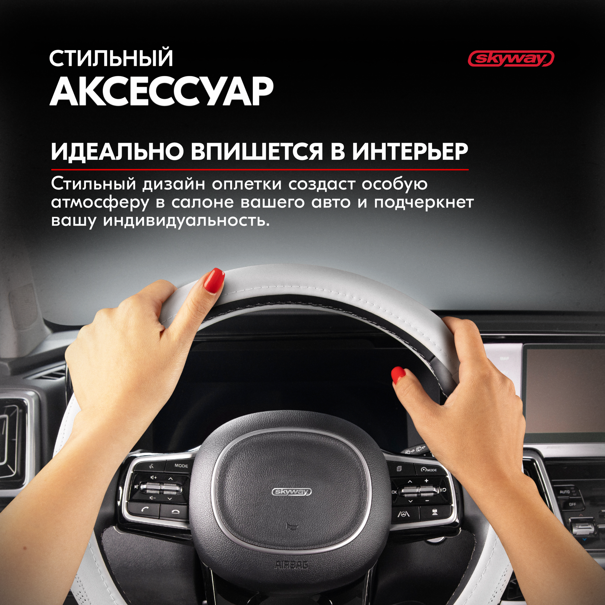 Оплетка на руль Art-1 SKYWAY M (37-39) серый экокожа, S01102341 677 ₽