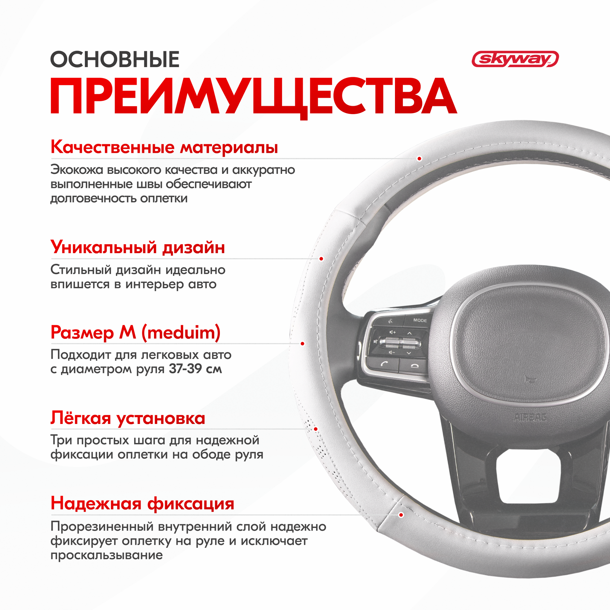 Оплетка SKYWAY Art-1 M серая экокожа S01102341 15971253 информация: