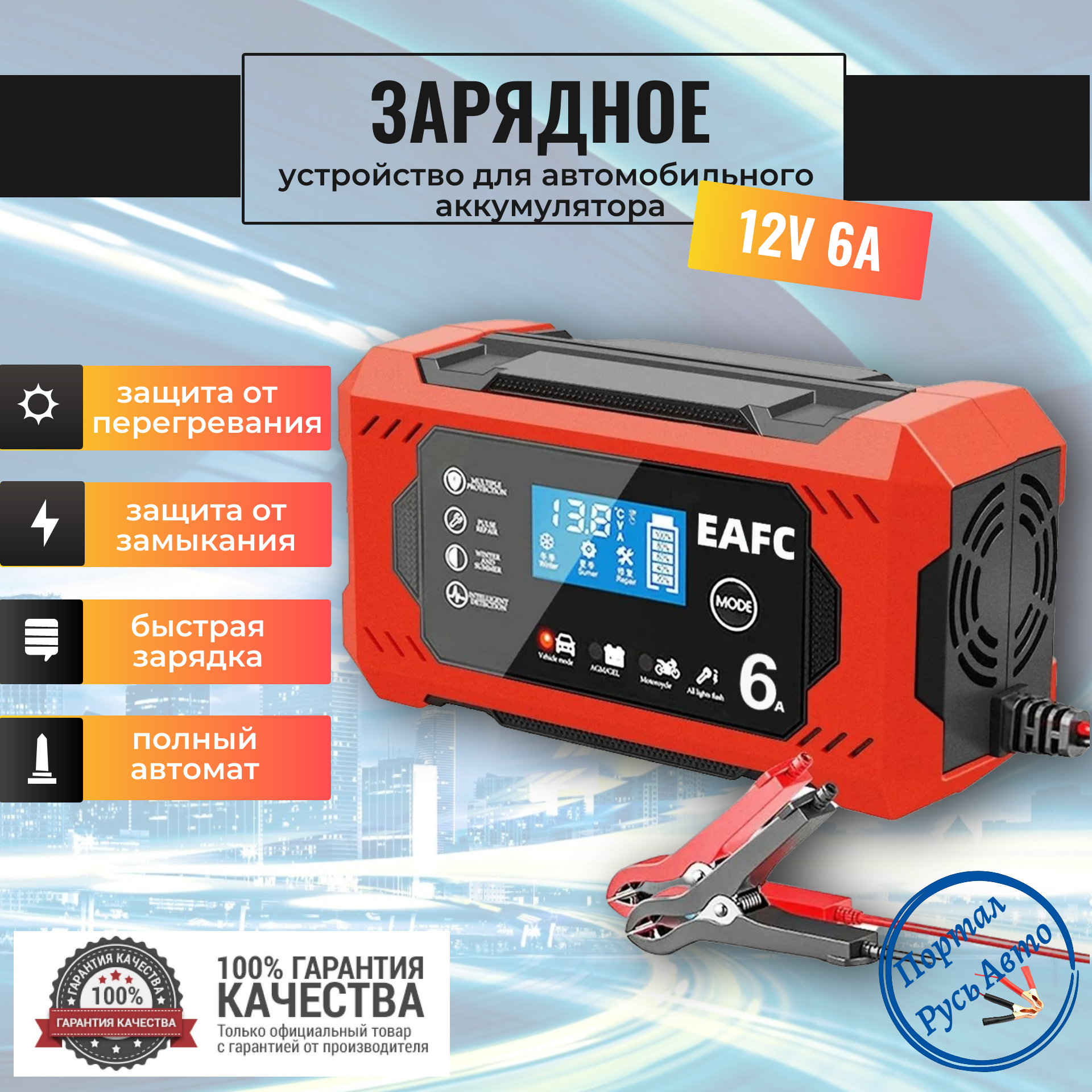 Зарядное устройство EAFC для аккумуляторов 12 В/6 А, ЖК-дисплей, быстрая зарядка автомобиля, мотоцикла, AGM Deep cycle GEL информация: