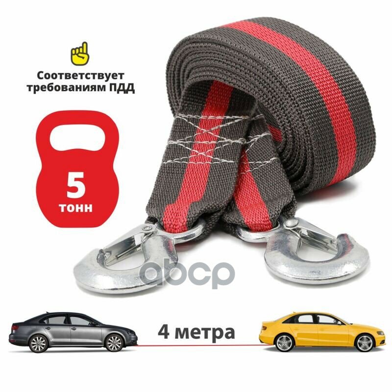 Трос буксировочный лента 5 т, 2 крюка, в блистере (стропа усиленная)
